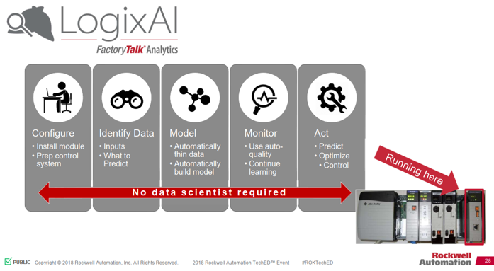 市場の多くの分析技術は、データサイエンティストと工業プロセスに対する詳しい知識を必要としますが、Rockwell FactoryTalk Analytics LogixAIモジュールは ControlLogix 制御システムに拡張されており、データサイエンティストの代わりに作業可能で、生産ラインの作業者の負担を大幅に軽減します。このモジュールは直接制御ボックスに取り付けられ、制御システムのデータを使用して予測モデルを構築し、作業の実行を継続的に監視し、異常を検知します。